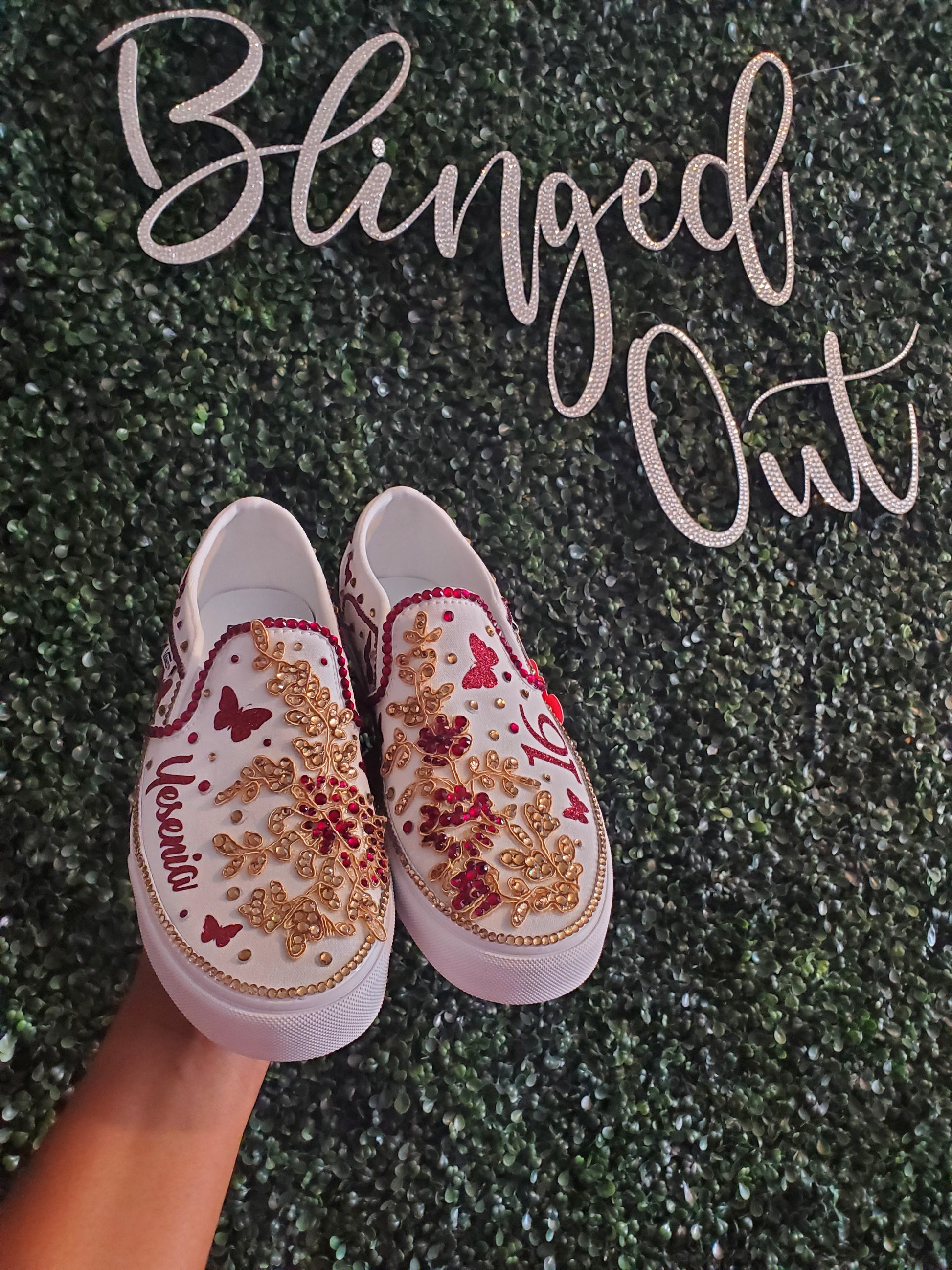Take advantage of one of our most popular designs! The special includes your choice of GOLD, SILVER, or ROSE GOLD embellishments, colors and customization (butterflies, hearts, etc)